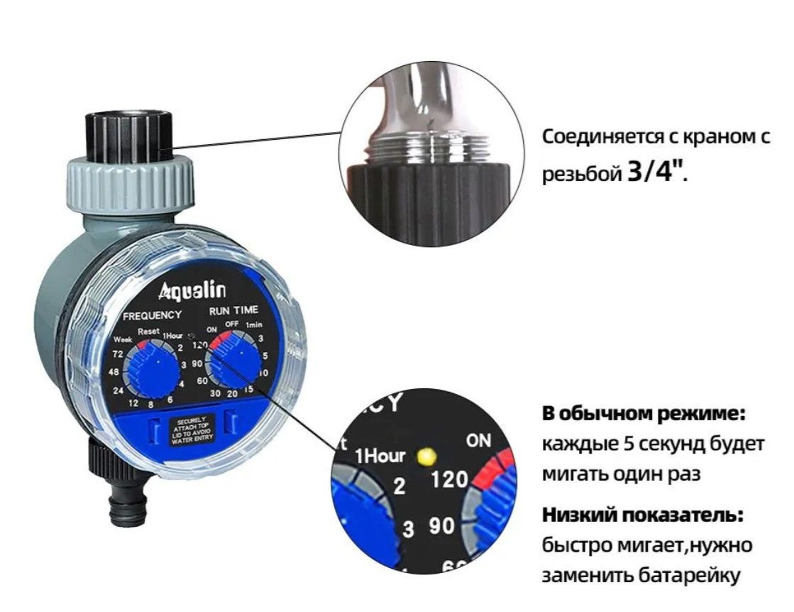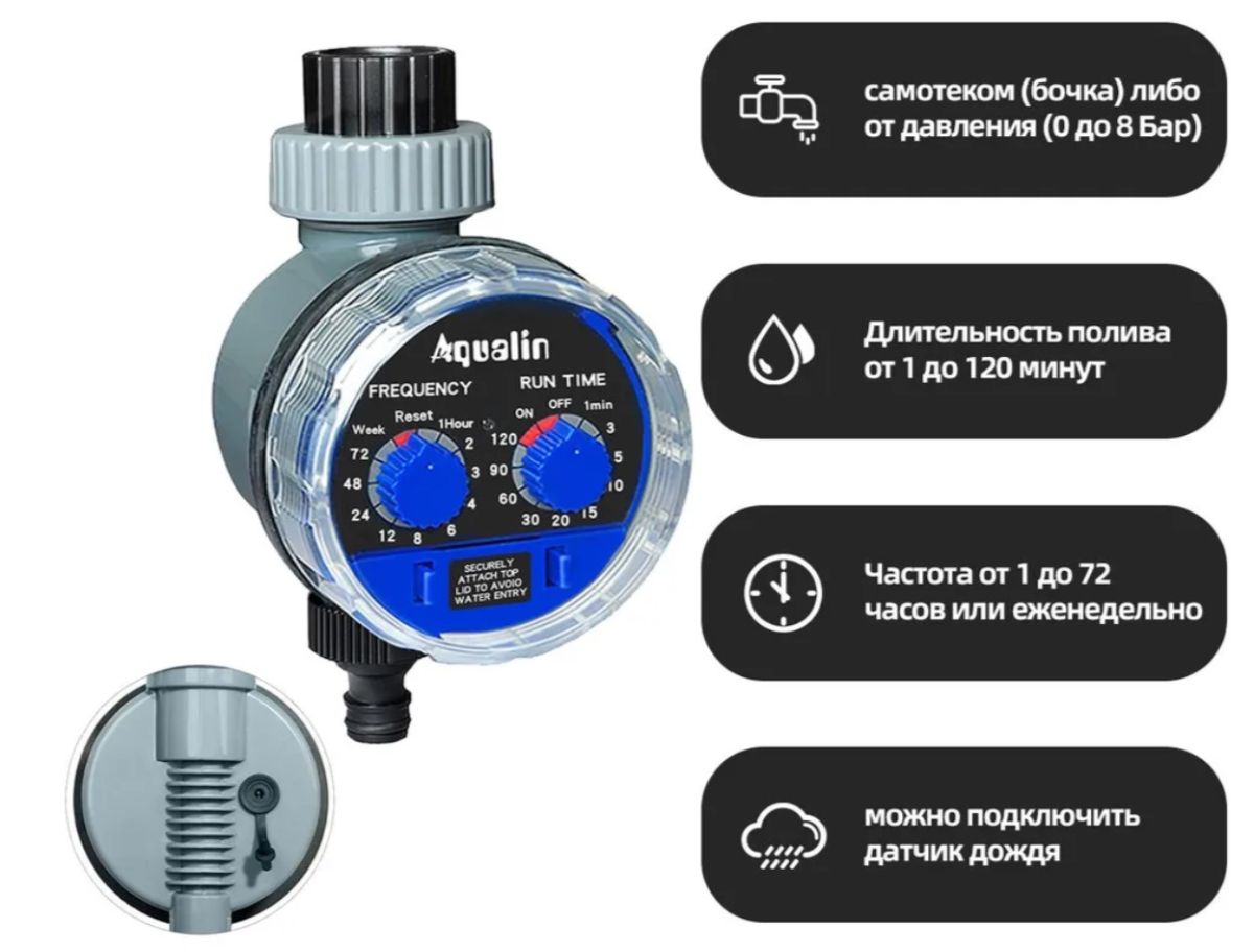 Читать все статьиТаймер полива,подачи воды,Aqualin 21025 капельный,электронный,шаровый