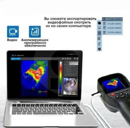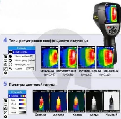 Недорогой профессиональный инструмент, новый промышленный визуализатор инфракрасных тепловизионных образов, может различать температуры от -20 °C до +500 °C, и создавать наглядную визуализацию. Картинка отображается на достаточно большом цветном экране диагональю 3.2 дюйма. Также можно сохранять созданные изображения и предавать на компьютер. Поддерживается регулировка излучательной способности, есть поддержка различных режимов отображения температур в видимом свете — желтый, красный, радужный, серый и т.д. Инфракрасный термометр имеет интуитивно понятное управление. Вес прибора 320 грамм.