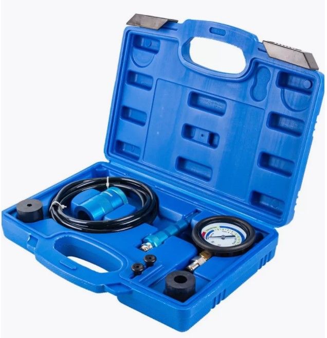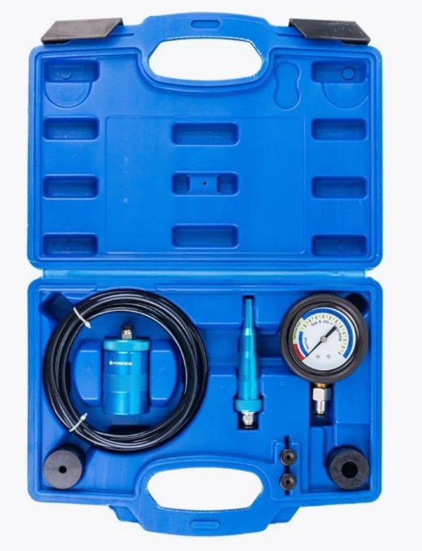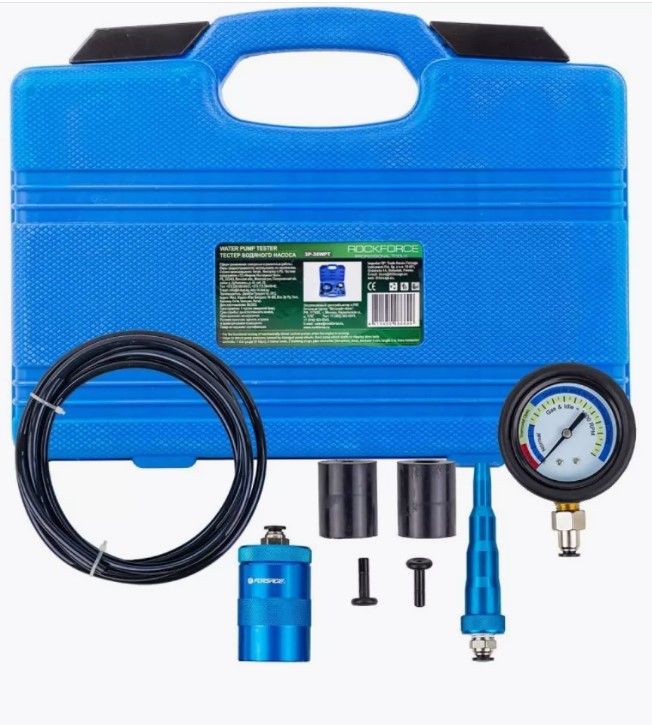 Тестер водяного насоса из 8 предметов в кейсе предназначен для проверки работы водяных насосов системы охлаждения с механическим приводом при работающем двигателе.