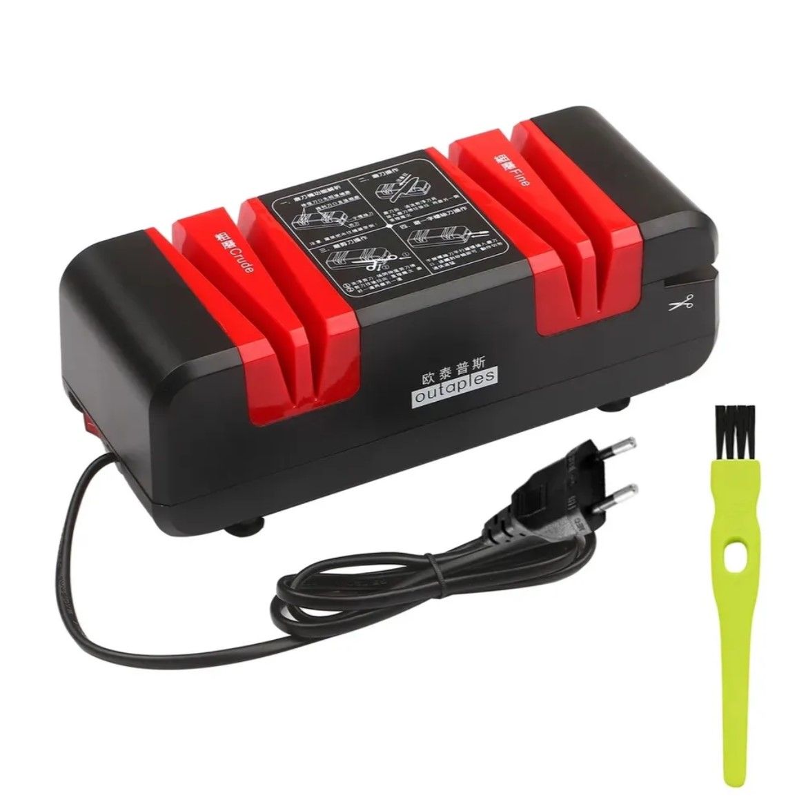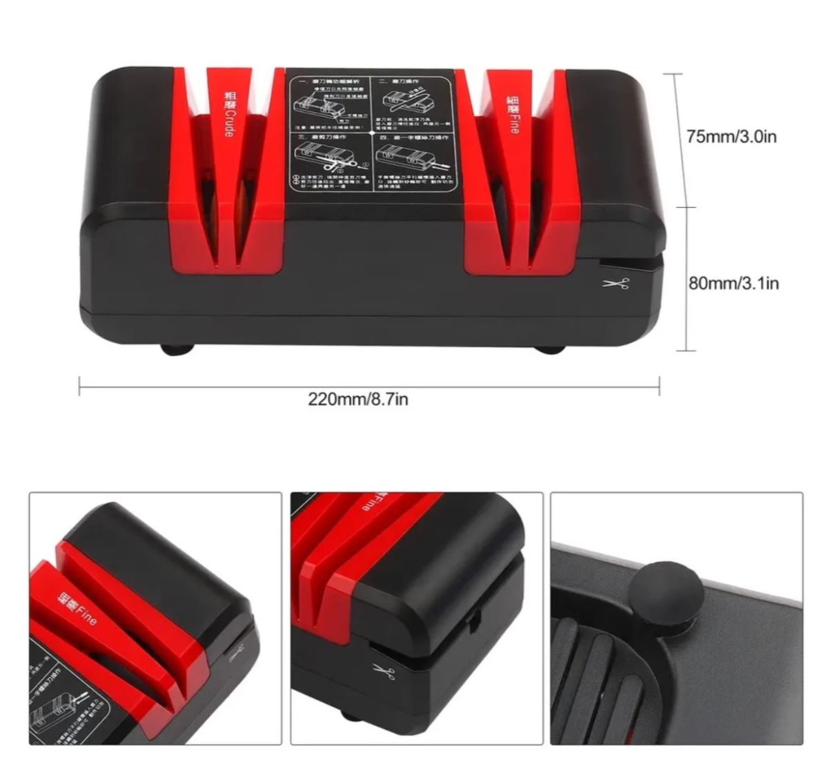 Профессиональная 2-хступенчатая заточка в домашних условиях. Маленькая и компактная электрическая точилка для ножей предназначена для использования на домашней кухне. С помощью ножеточки вы можете добиться профессиональной заточки ножей в домашних условиях. Грубая стадия поможет заточить нож быстро , а тонкая стадия отполирует лезвие до бритвенного состояния.