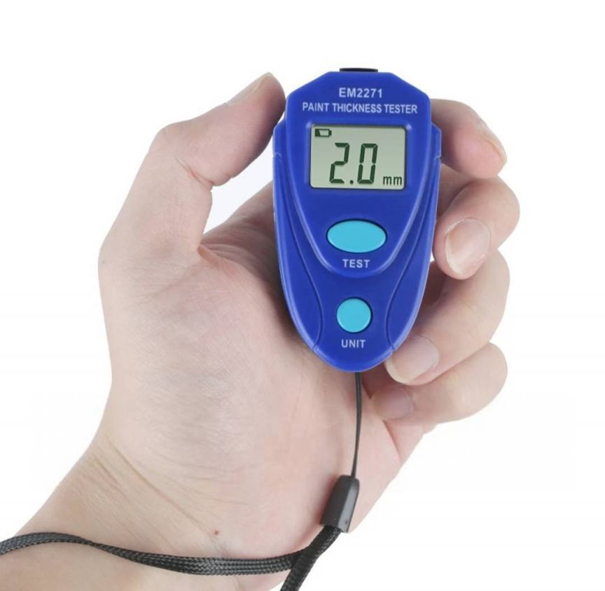 Толщиномер EM2271 - устройство для определения толщины лакокрасочного покрытия металлических поверхностей автомобиля. Незаменимое устройство для кузовного ремонта или покупки подержанного транспортного средства. Позволяет определить элементы кузова, которые подвергались перекраске и оценить качество проделанных работ. Заводская окраска всегда равномерная и слой достаточно тонкий, при перекраске в любом автомобильном сервисе слой будет значительно толще, а в случае серьезных повреждений и рихтовки - к покрытию добавится ещё и толщина шпатлевки.