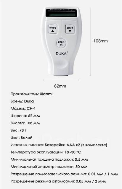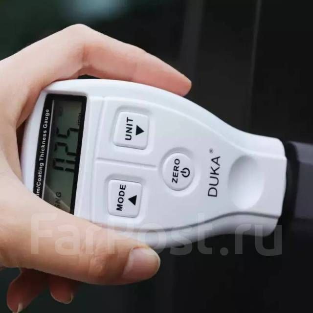 Duka Thickness Gauge представляет собой компактный прибор, позволяющий точно определять толщину лакокрасочного покрытия на металлических поверхностях транспортных средств. При его использовании вы сможете точно опознать, какой участок машины был переделан и насколько хорошо сервис справился со своей работой. Ведь, как известно, машины с заводской краской имеют тонкий равномерный слой на каждом элементе кузова. А в случае сервисных работ после аварии к слою краски прибавляется еще и толщина шпаклевки, которую прибор сразу же определит.