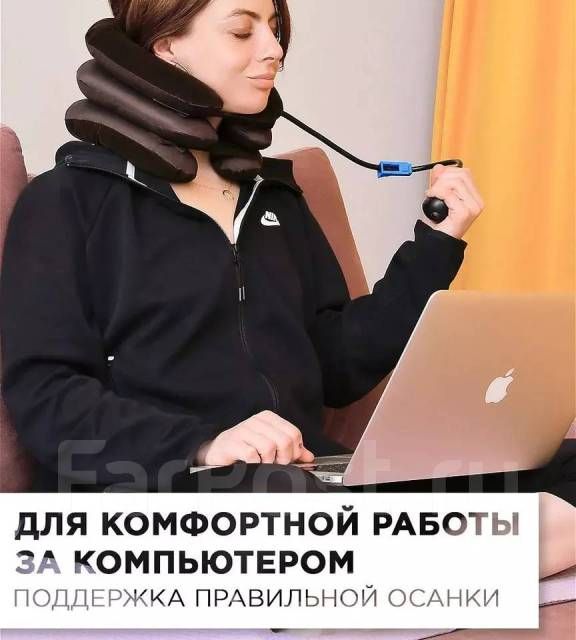 Поддерживающий воротник для тех, кто заботится о своем здоровье, либо испытывает дискомфорт от долгого пребывания в сидячем положении. Модель сделана из прочного, тактильно приятного и экологичного материала. Другие преимущества: воротник надувается при помощи ручной груши, что позволяет придавать ему желаемый размер и форму, модель подойдет взрослым пользователям с практически любым обхватом шеи, использование воротника снижает нагрузку на шейный отдел и область плеч. Пользоваться воротником можно в дороге, на работе или в домашних условиях - для профилактики заболеваний и ослабления болезненных ощущений.