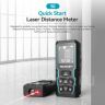 Прибор имеет 2 точки отсчета и функции сложения и вычитания для более точных измерений. Кроме того, он поддерживает непрерывное измерение и функцию Пифагора для расчета площади и объема. Встроенная память позволяет сохранять до 30 последних замеров.