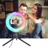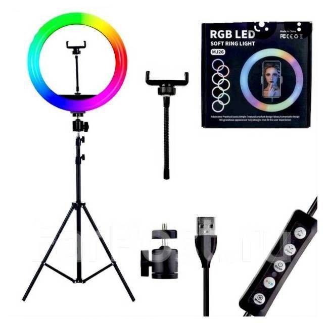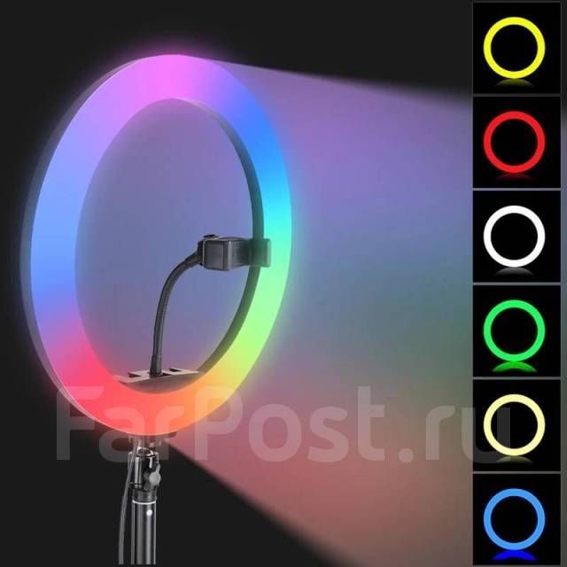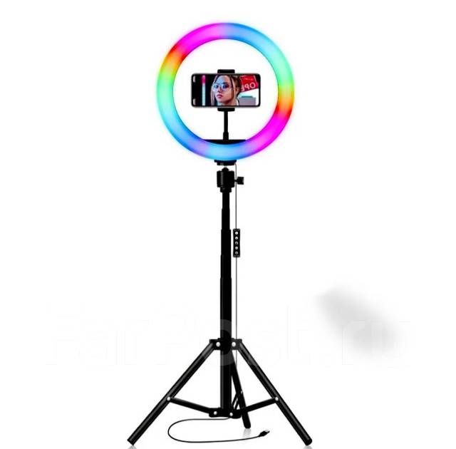 Читать все статьиЦветная кольцевая селфи-лампа Raygood RGB диаметр 26 см + штатив