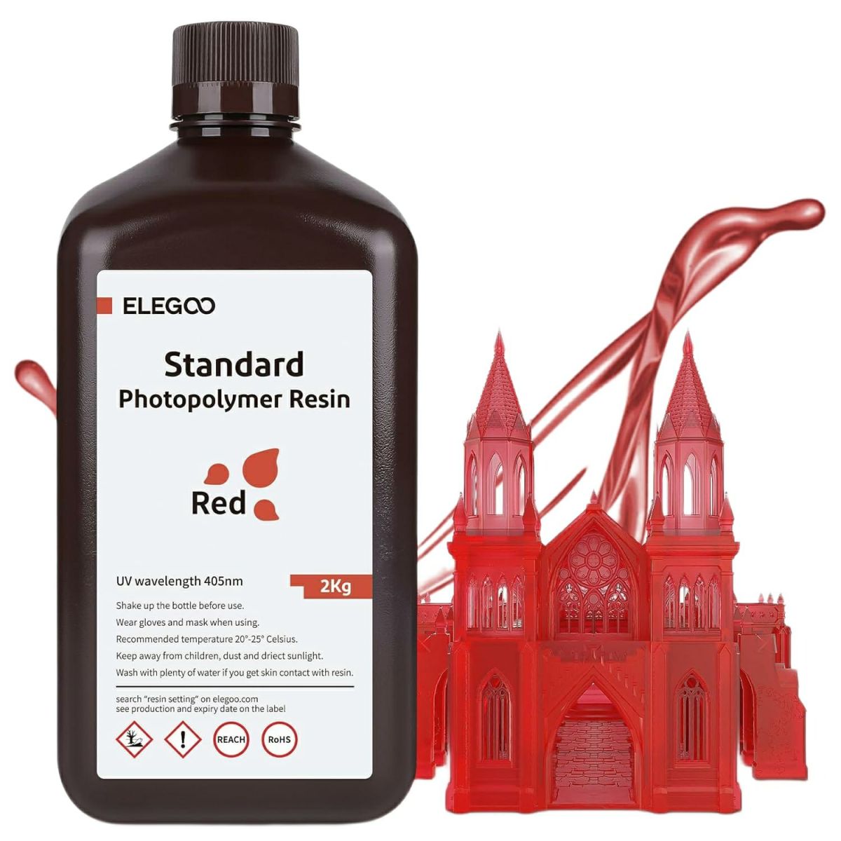 Elegoo Standard Resin - базовая смола для печати на домашних и професиональных LCD принтерах. Полимер подходит для моделирования, изготовления прототипов и декоративных изделий. Материал имеет спектр засветки 405 нм, что делает его совместимым с большинством DLP/LCD принтеров.