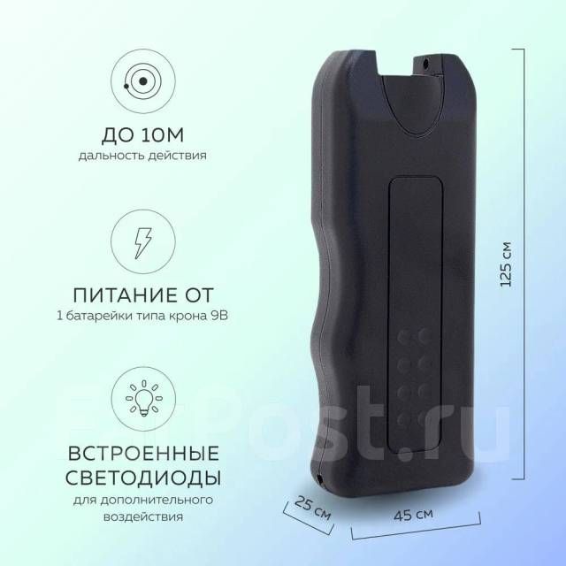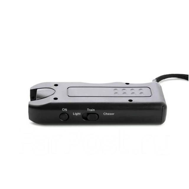 Портативный прибор для отпугивания агрессивных собак содержит в себе мощный источник ультразвука, который способен создавать звуковую волну с давлением до 130 дБ. Такое мощное излучение в сочетании с яркими световыми вспышками ошеломляет собаку и заставляет ее прекратить агрессию. Прибор может служить фонарем в темное время суток. Питается отпугиватель от батареи типа «Крона» (приобретается отдельно).