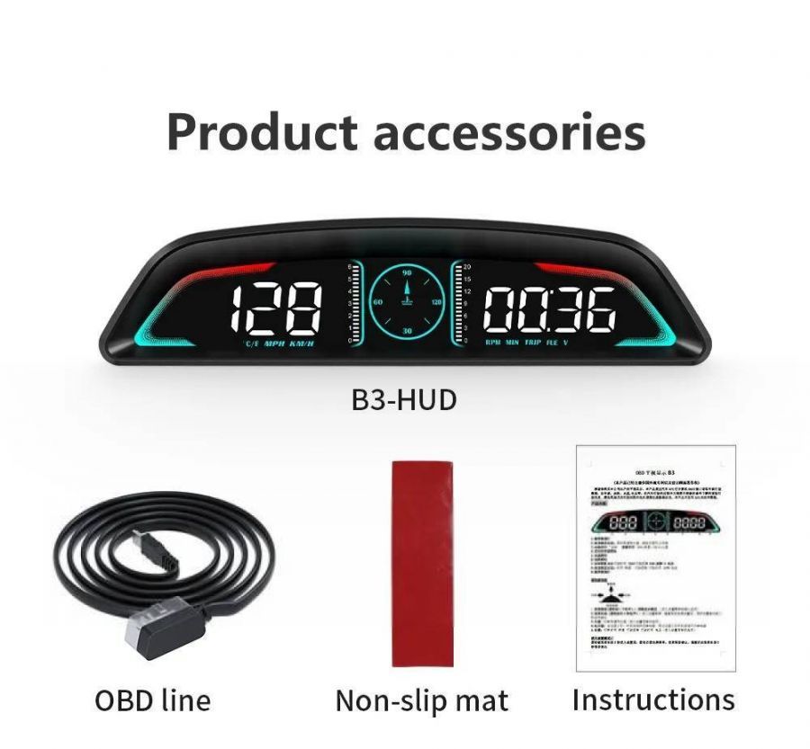 Не нужно вставлять пленку на лобовое стекло автомобиля в качестве обычного HUD, он может проецировать и отображать данные на своем собственном дисплее напрямую, лучшего отображения в день. Металлическое матовое мастерство и современный дизайн, добавьте дотошный дисплей вашего автомобиля. Дисплей данных включает в себя скорость, спутниковое время, одноразовое расстояние вождения, одно время вождения, высоту, напряжение, режим соревнований ускорения и тест на производительность торможения.