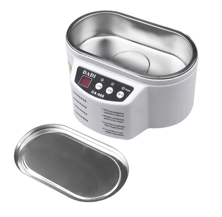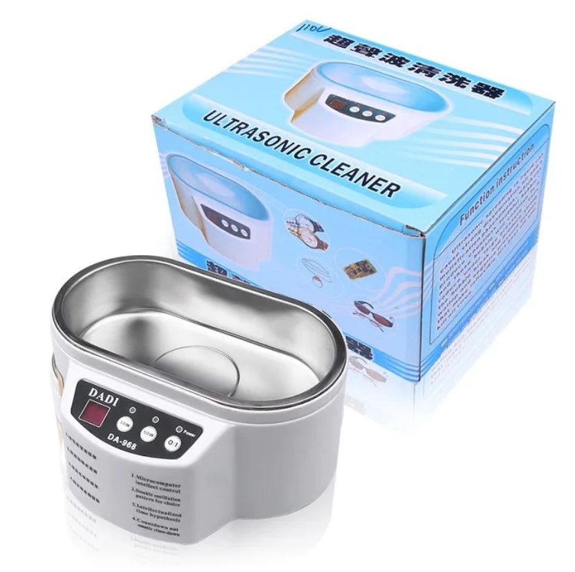 Небольшая ультразвуковая ванна для бытовых нужд. Подходит для очистки печатных плат, очков, ювелирных изделий и так далее. Объем – 600мл.