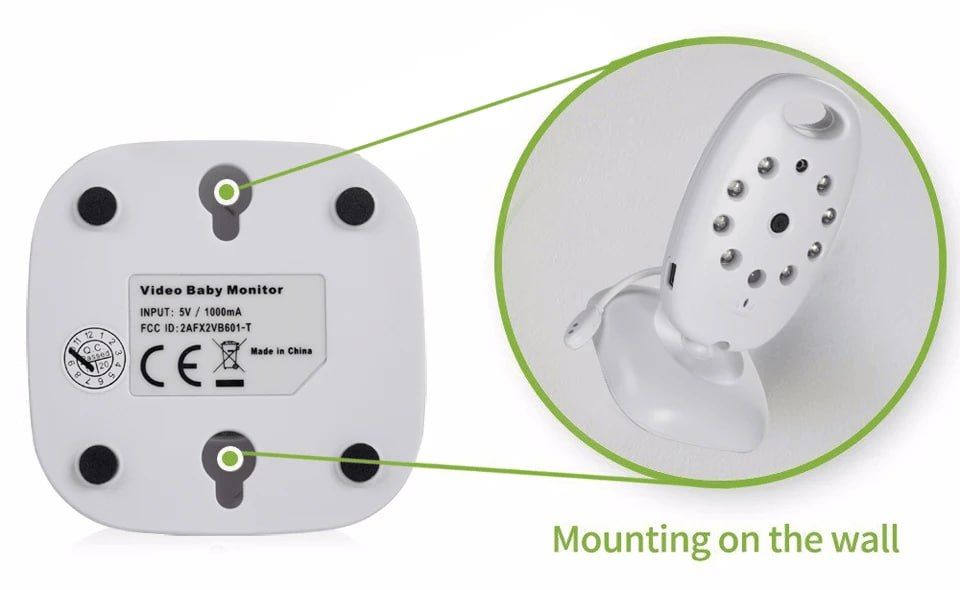 Цифровая беспроводная видеоняня оборудована цветным монитором высокого разрешения, с размером диагонали 5,1 см (2 дюйма). Цифровая видеоняня характеризуется увеличенным радиусом действия: 250 метров на открытом воздухе, в закрытых помещениях — 50 метров. Сигнал эффективно передается сквозь толщину 2-х бетонных стен, на дистанцию до 50 метров. В условиях недостаточного освещения включается режим ночного видения с помощью встроенных в камеру инфракрасных датчиков. Электропитание беспроводной видеоняни происходит с помощью USB-провода, устройство может также заряжаться через пауэрбанк.