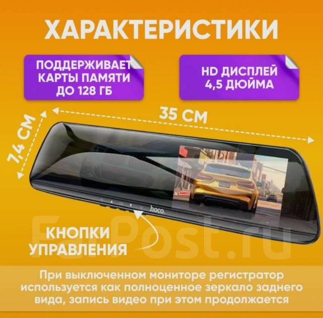 Читать все статьиВидеорегистратор зеркало Hoco DV4 с камерой заднего вида