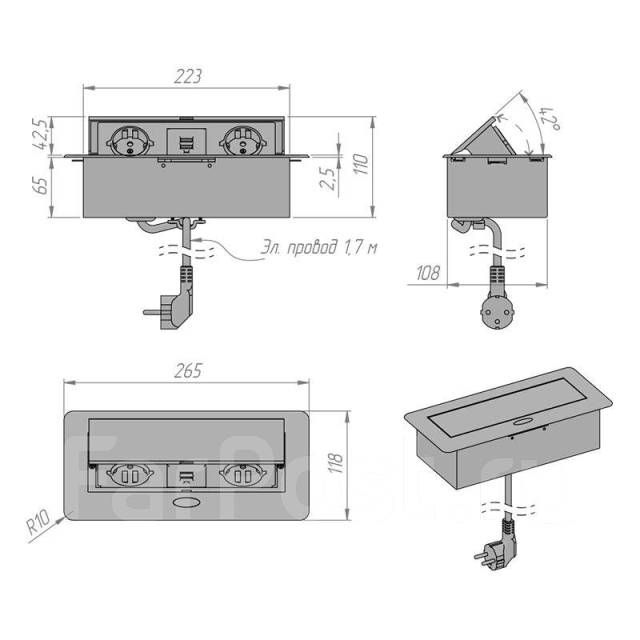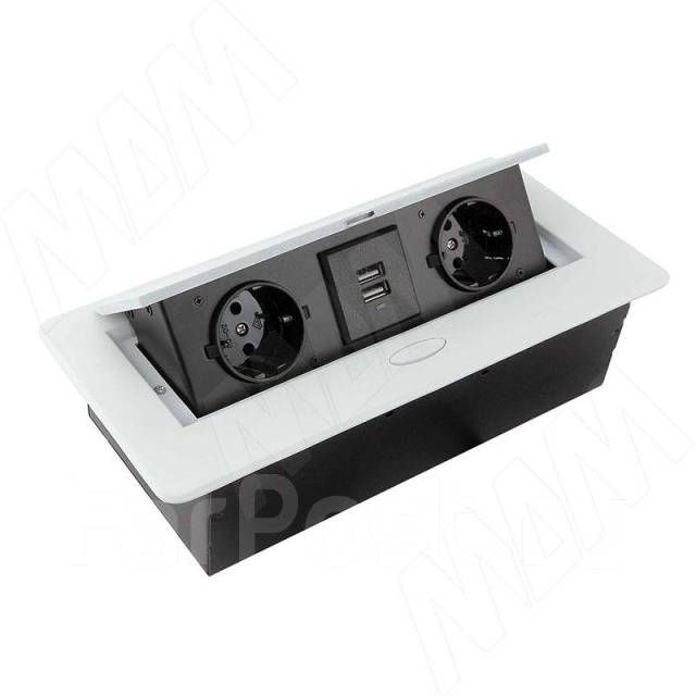 Выдвижная розетка для столешницы, стола и прочей мебели, горизонтальная, представляет собой металлический розеточный блок на 2 EURO розетки и 2 USB порта для зарядки.Габаритный размер 265x118x65 ммОтверстие 225х108 ммПри нажатии на кнопку на лицевой части выдвижной розетки, происходит плавное открытие. Данная модель готова к эксплуатации вся внутренняя разводка уже сделана на фабрике, .В комплект поставки к выдвижной розетке так же входит инструкция по установке изделия в столешницу, с подробной схемой и указанием всех размеров.Скрытые выдвижные удлинители с розетками отлично подходят для установки в столешницу на кухне, что помогает экономить рабочее пространство. В закрытом положении встраиваемая розетка образует со столешницей практически ровную поверхность. Также выдвижные розетки нашли распространение в офисах, переговорный залах, стойках обслуживания клиентов.