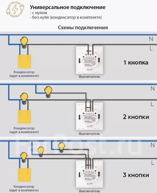 Сенсорный выключатель с удаленным управлением это современное решение для "умного" управления освещением. Установка выключателя ничем не отличается от обычного, устанавливается в стандартный подрозетник, вы сможете с легкостью заменить старые выключатели на сенсорные. Работает с любыми типами ламп - светодиодными, галогеновыми, лампами накаливания. Подключение с нулевой линией обеспечивает более стабильную работу, отсутствие мерцаний на светодиодном освещении, нет потребности в установке дополнительных конденсаторов. Сенсорный выключатель оснащен светодиодной индикацией подсветки клавиш: красный цвет - выключен, синий - включен. Размер лицевой панели 86х86 мм. Глубина установки 26 мм. В комплекте к выключателю поставляется конденсатор для работы при подключении без нулевой линии. Его рекомендуется установить непосредственно перед лампой-люстрой. Если в выключателе более одной линии (две, три, четыре клавиши) то конденсатор устанавливается только на 1 линию.
