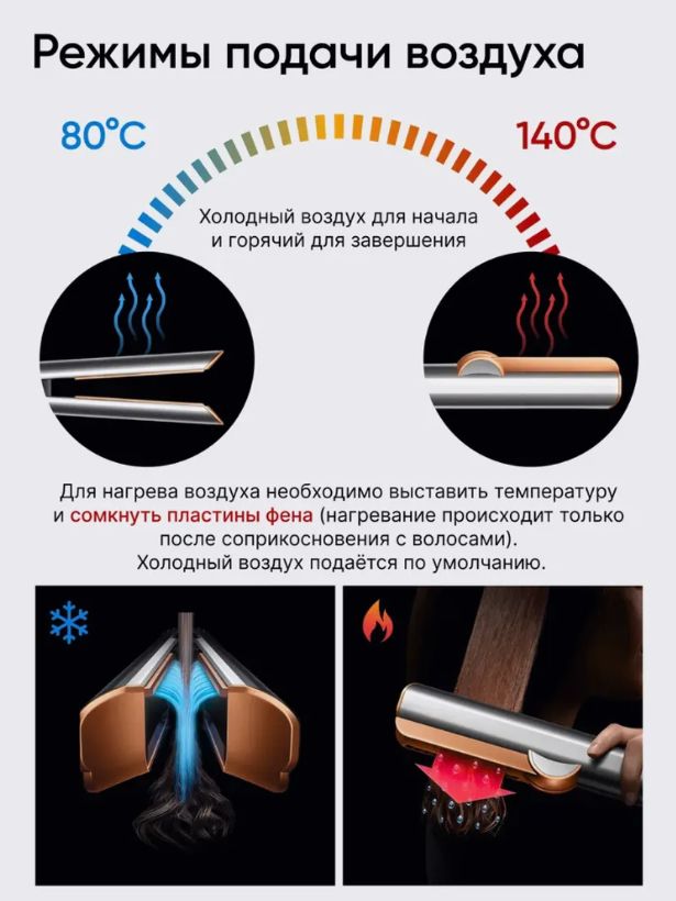 Фен-выпрямитель Airstrait HT01 оснащен передовой системой интеллектуального контроля температуры , которая регулирует нагрев воздушного потока до 16 раз в секунду . Благодаря этому устройство предотвращает перегрев и минимизирует тепловое повреждение волос, сохраняя их естественный блеск и здоровье.