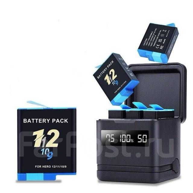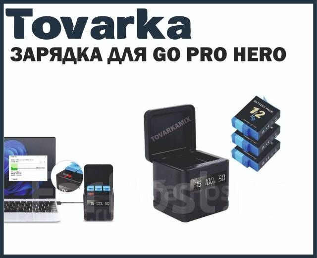 Подходит для GoPro Hero 12/11/10/9, может заряжать 3 батареи одновременно, поддерживает зарядку оригинального аккумулятора.