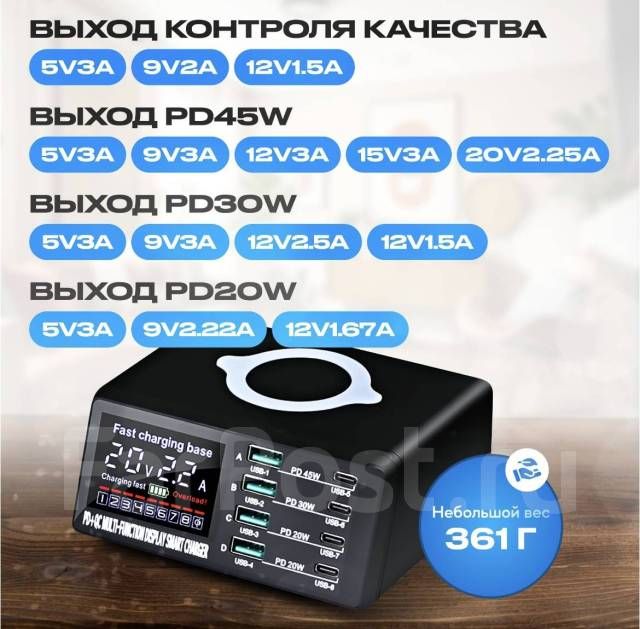 Зарядник не только многофункциональный, но и универсальный. Техника подходит на самсунг, huawei, хонор и гаджеты других популярных производителей. Универсальная многопортовая станция также может применяться для наушников, пауэрбанков, ноутбуков.